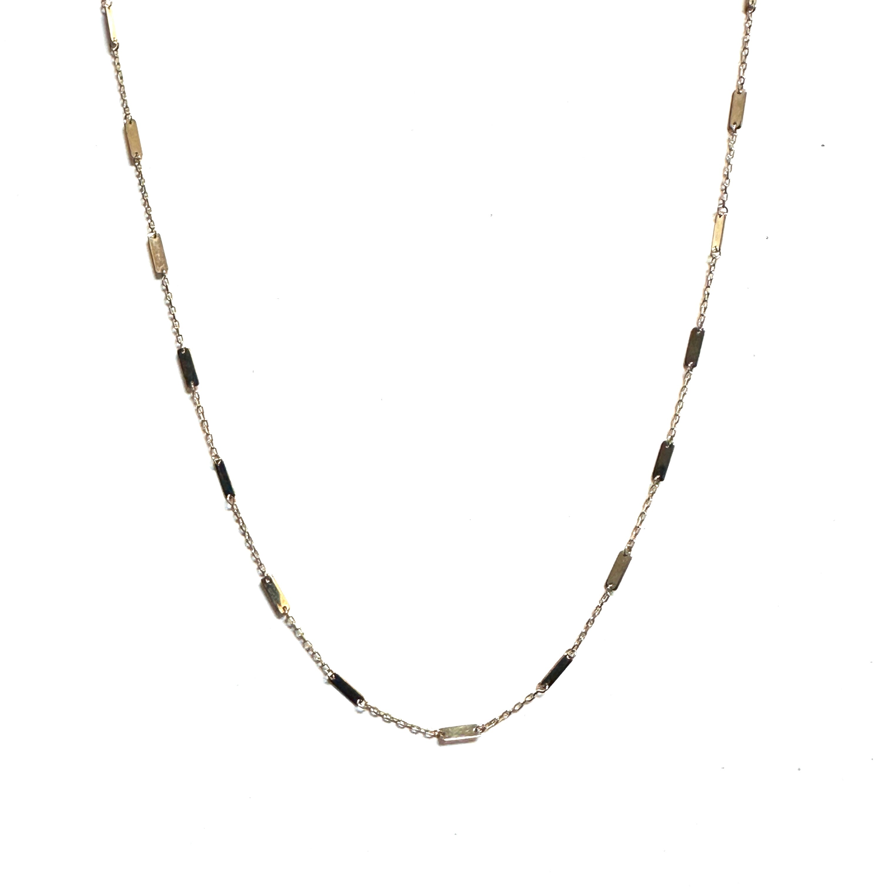 Crafted in radiant 10K yellow gold, this elegant necklace features sleek high-polished bar stations evenly spaced along a delicate chain. The minimalist design offers a modern, refined shine that’s perfect for layering or wearing solo as a subtle statement piece.
