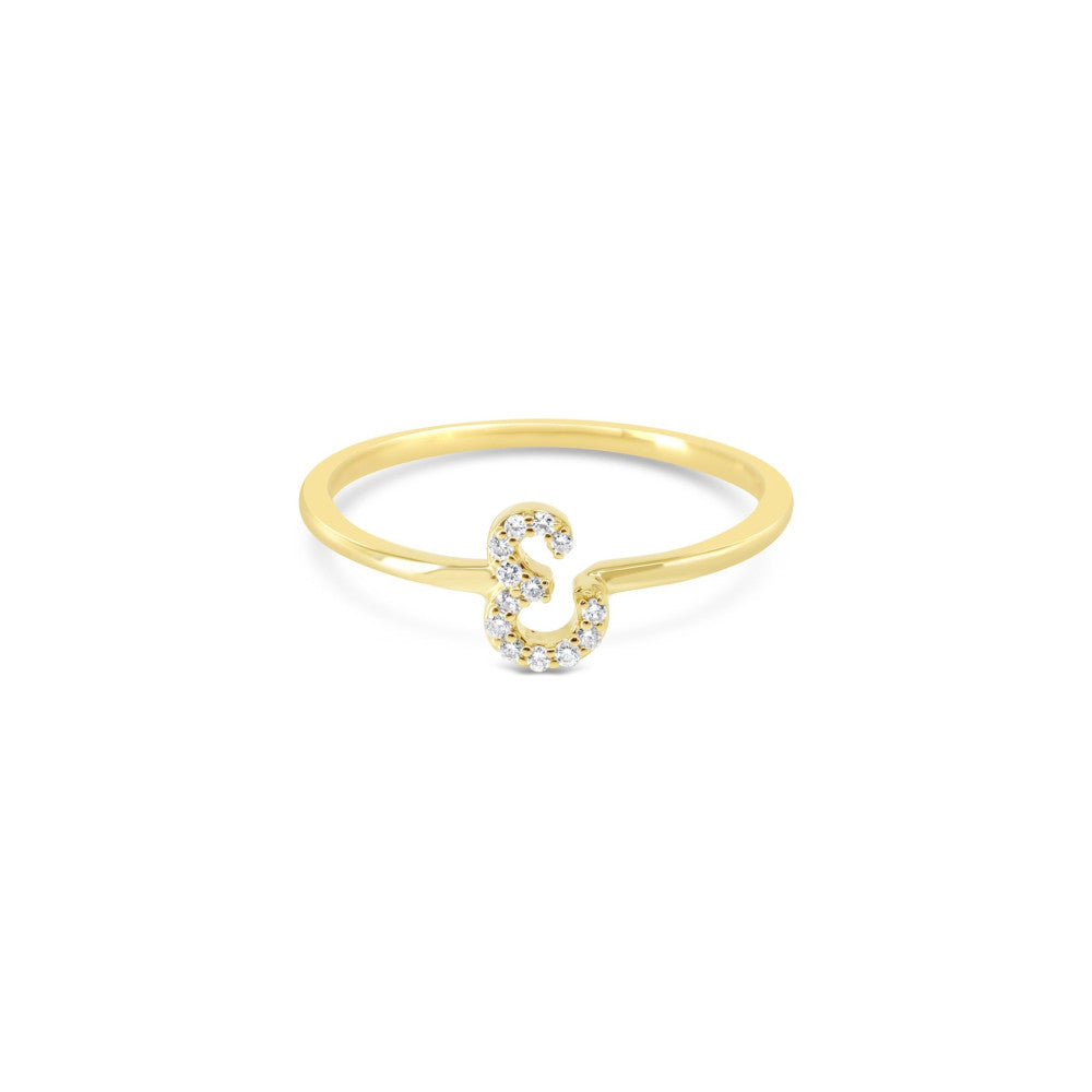 10K Yellow Gold Script Lab Grown Diamond Initial "E" Ring