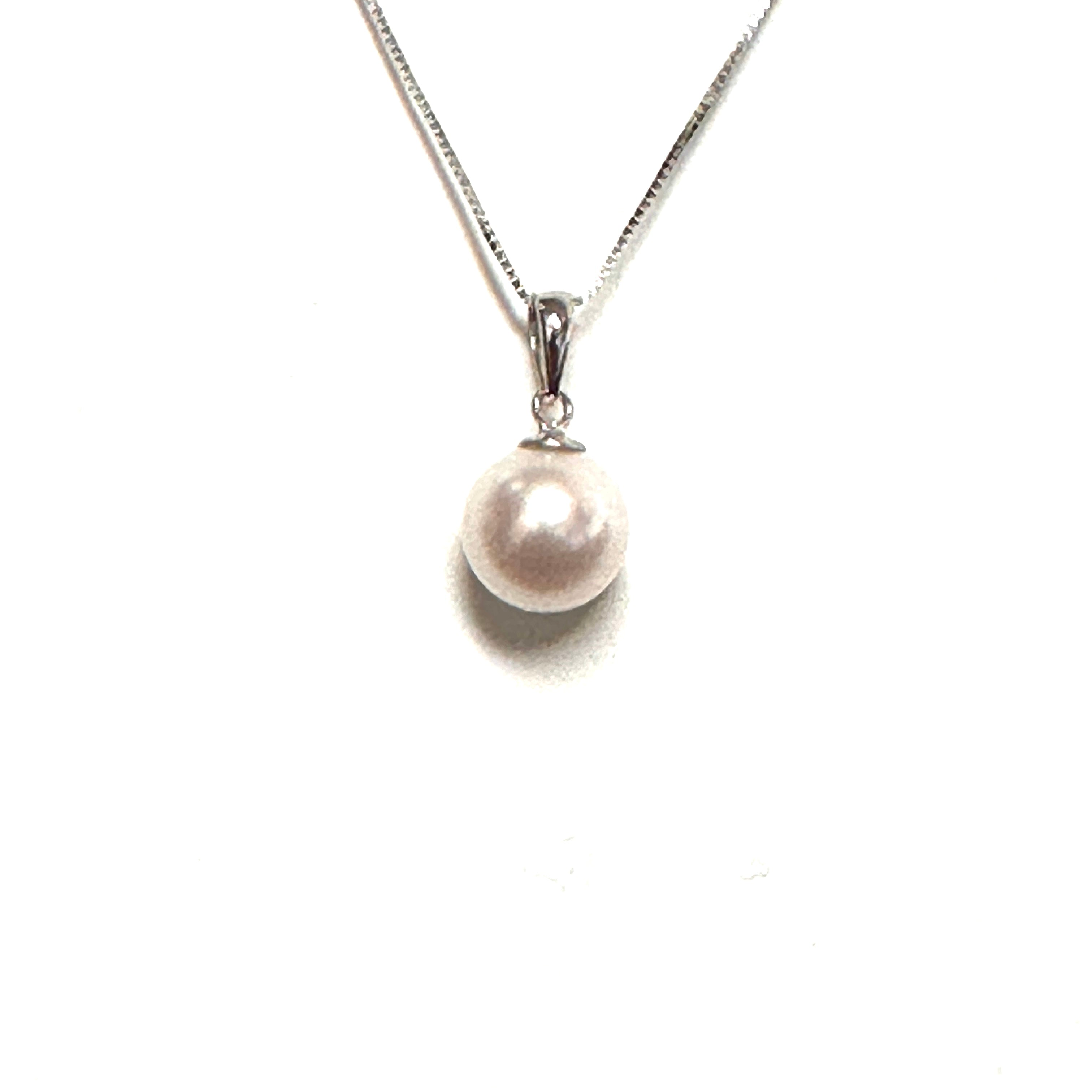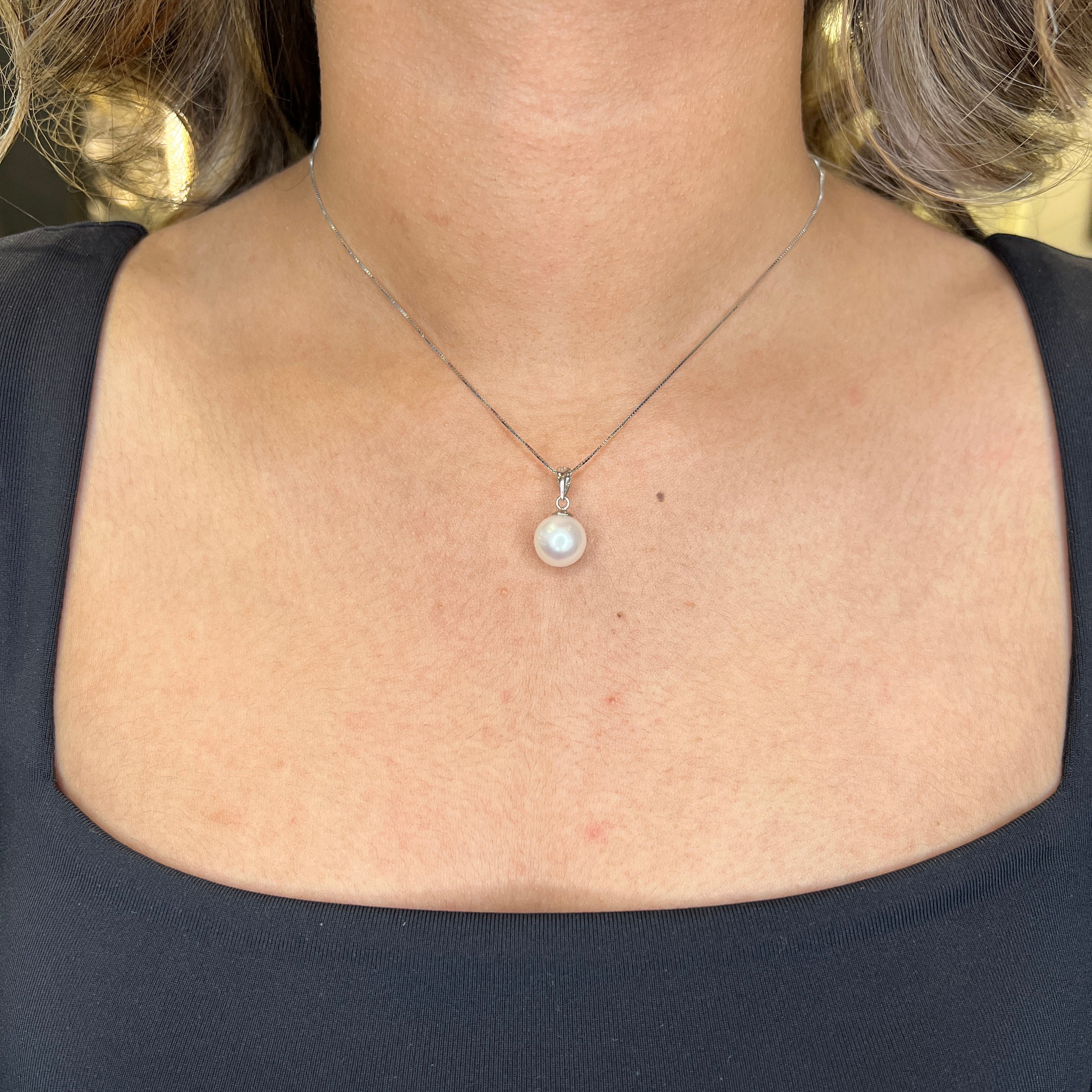 14K White Gold (10mm) Fresh Water Pearl Dangle Pendant