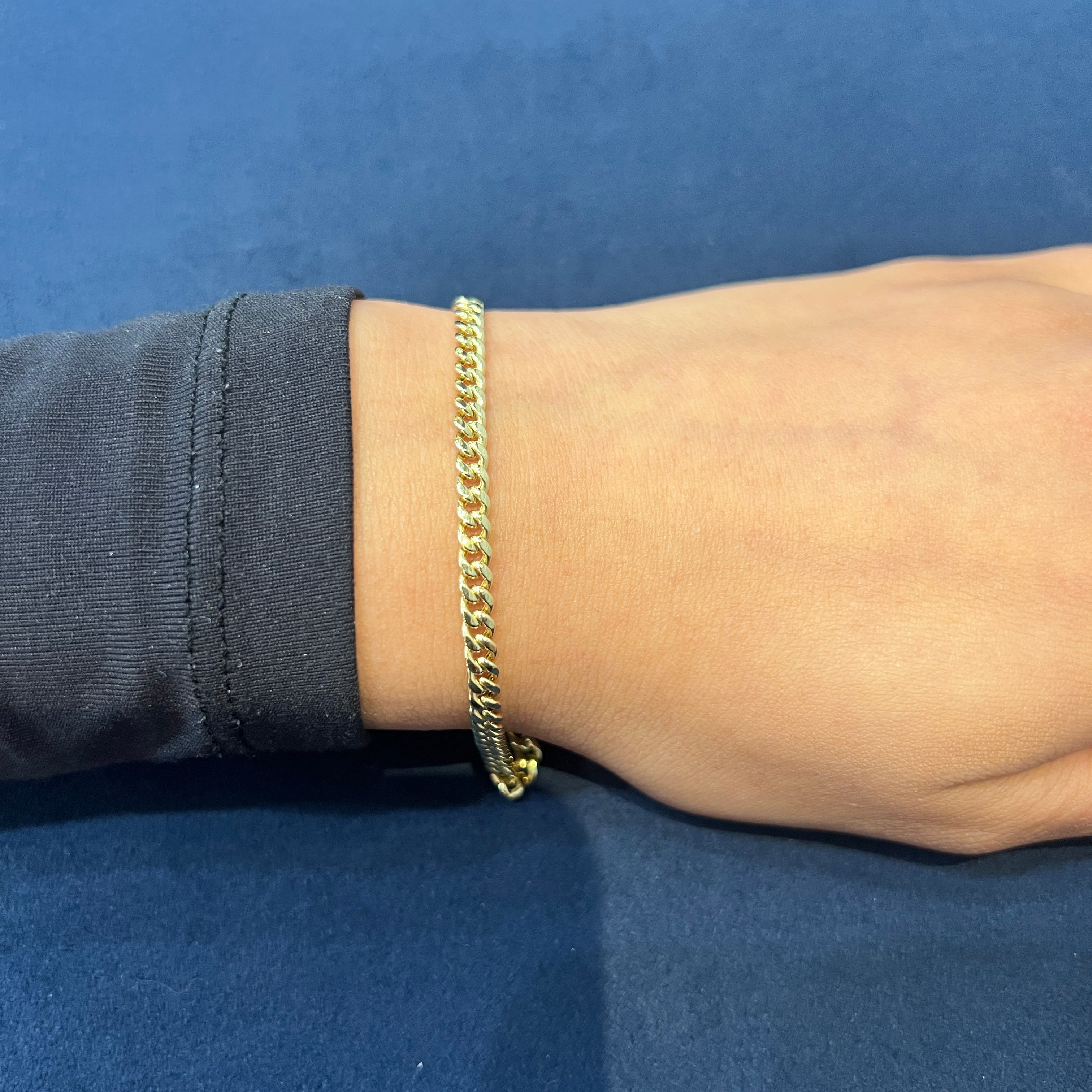 10K Yellow Gold (3.7mm) Hollow Miami Curb Bracelet 7"