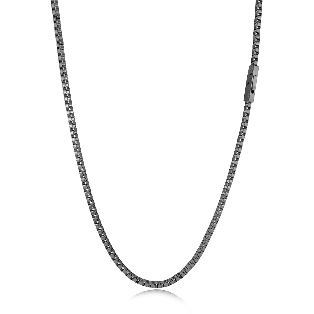 Crafted in durable stainless steel, this 22" squared box chain features a 3mm width with a sleek black-plated finish. The brushed texture adds a modern, rugged edge, making it perfect for everyday wear—whether layered or worn solo.