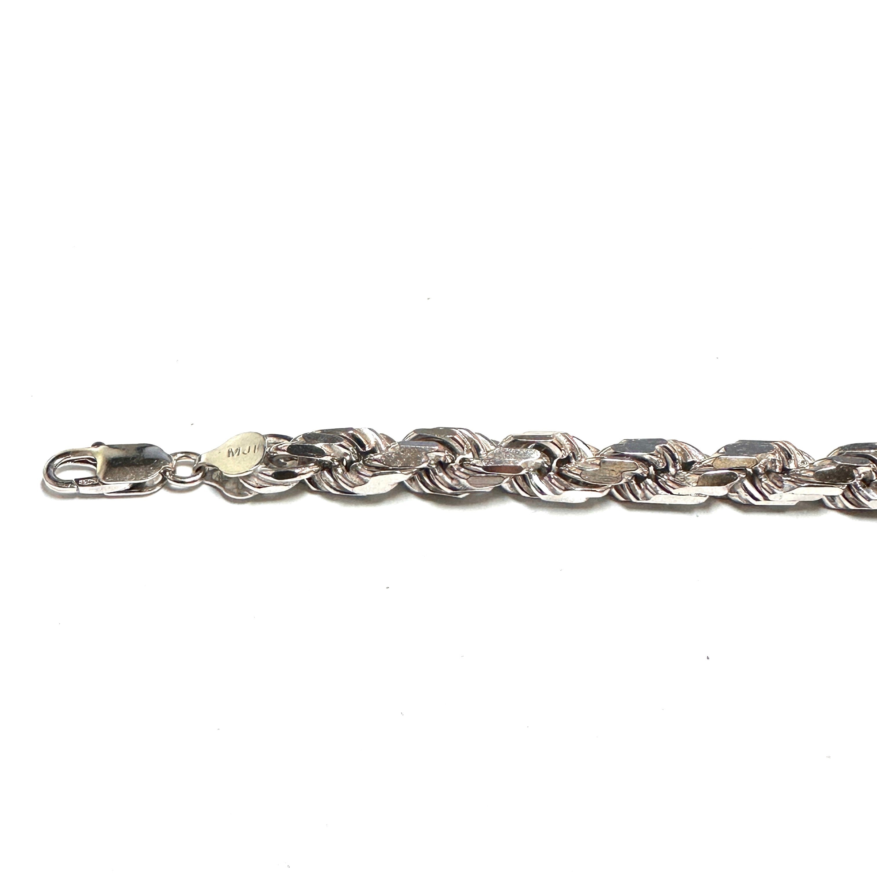 Sterling Silver (8.0mm) Solid Diamond Cut Rope Chains