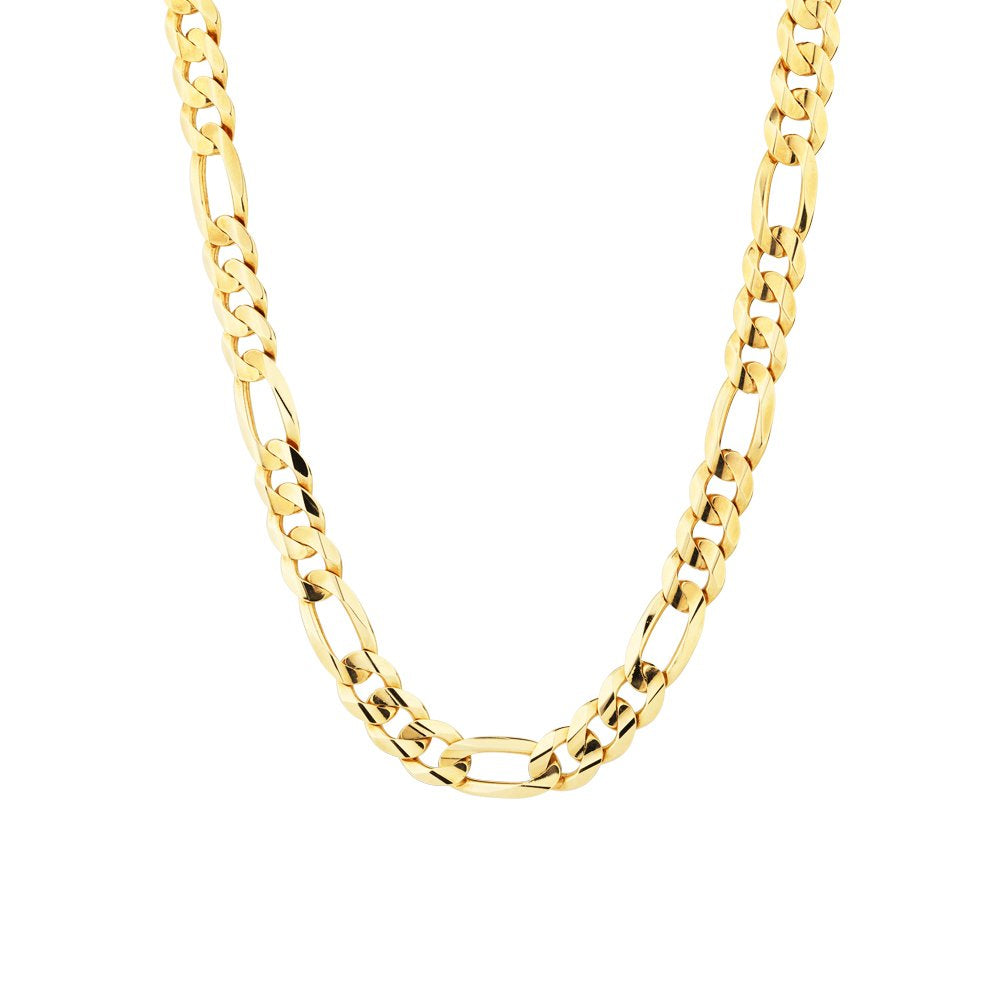 This impressive Figaro bracelet is crafted in sterling silver with a rich gold vermeil finish and measures 9 inches in length. Featuring a bold 7.8mm width, it showcases the classic Figaro link pattern of alternating long and short links, offering timeless appeal and polished sophistication. Designed for durability and comfort, this bracelet makes a powerful statement—perfect for everyday wear or special occasions.