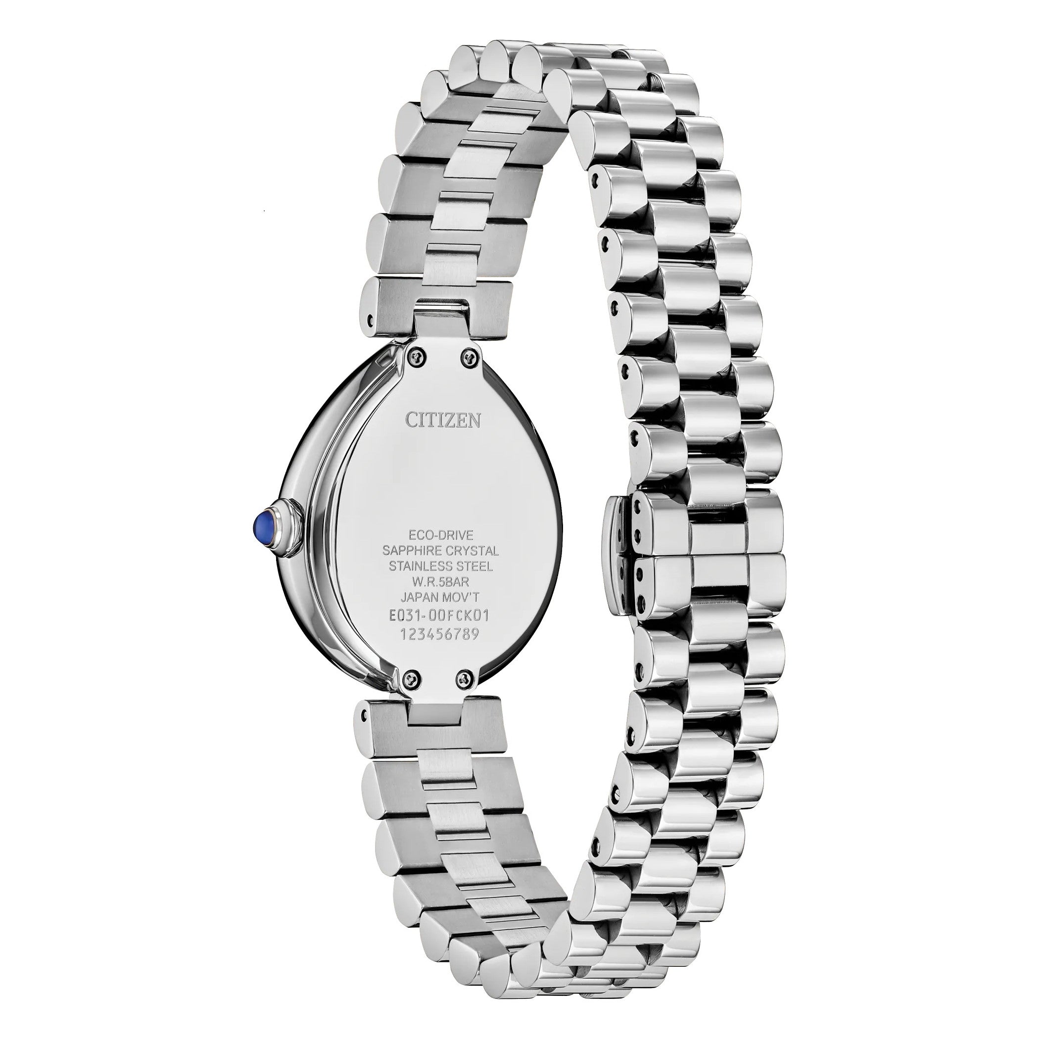 Flirty and feminine, the new Citizen L Rainell is a watch as creative and elegant as those who wear it. With subtle dimensions of 26mm by 31mm, the signature shape of the timepiece speaks for itself in an elevated gold-tone stainless steel. An integrated bracelet and synthetic sapphire-set crown punctuate the look. A lovely gold-tone brushed dial follows the shape of the case, playing host to refined details in applied indices and matching hands. Sustainably powered by any light with our proprietary Eco-Drive technology that never needs a battery. Water resistant up to 50 meters.
