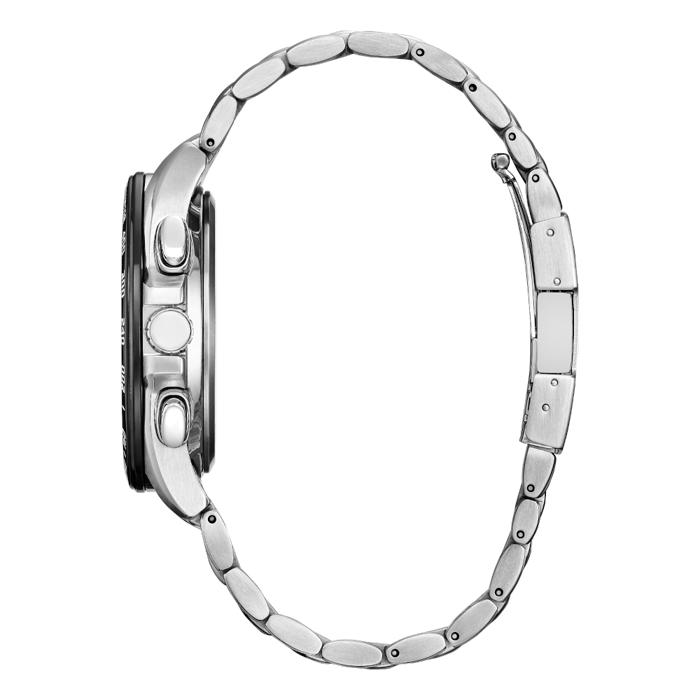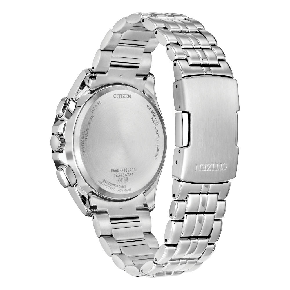 Other advanced features include atomic timekeeping technology with synchronized time adjustment available in 24 time zones, a chronograph measuring up to 60 minutes, a perpetual calendar, 12/24 hour time, an alarm, and a power reserve indicator. This high-performance men’s watch is sustainably powered by Citizen’s proprietary Eco-Drive technology, so it never needs a battery. Water resistant up to 100 meters.