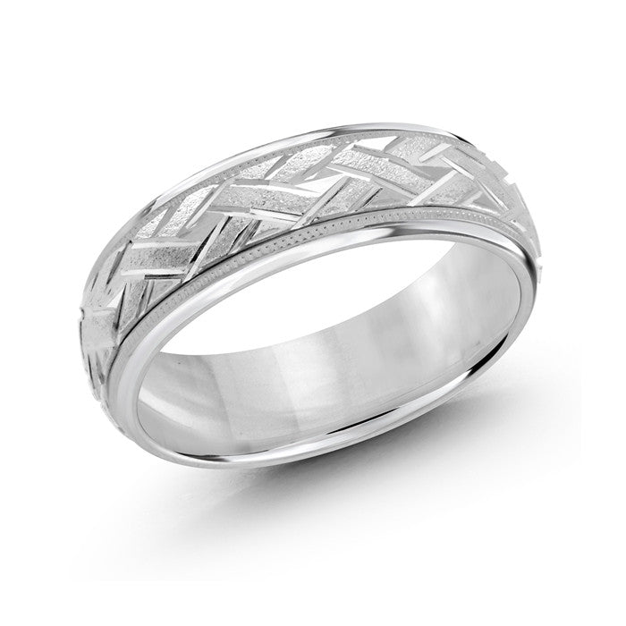 Malo 10K Gold (6mm) Laser Carved Wedding Band 10K White