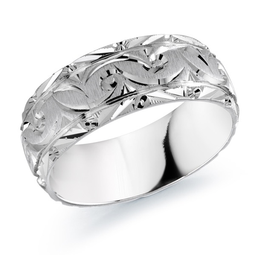 Malo Sterling Silver (8mm) Brushed and Laser Carved Wedding Band