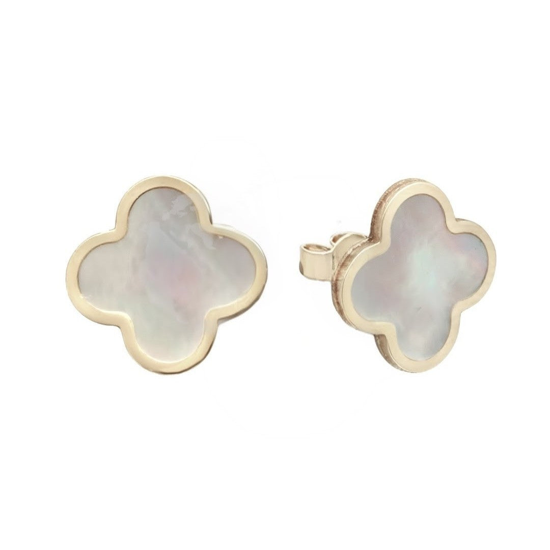 10K Yellow Gold (10mm) Designer Clover Style Mother of Pearl Earrings