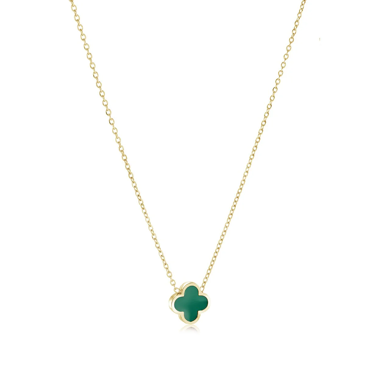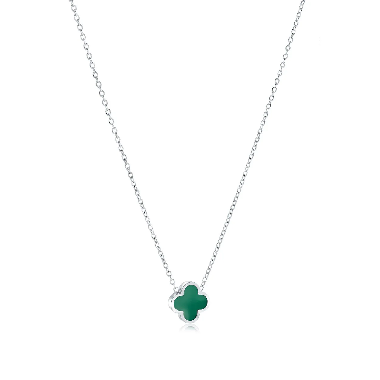 Fresh and vibrant, this stainless steel or gold plated necklace showcases a clover pendant in rich green enamel. A timeless symbol of luck with a modern pop of color—ideal for everyday style.