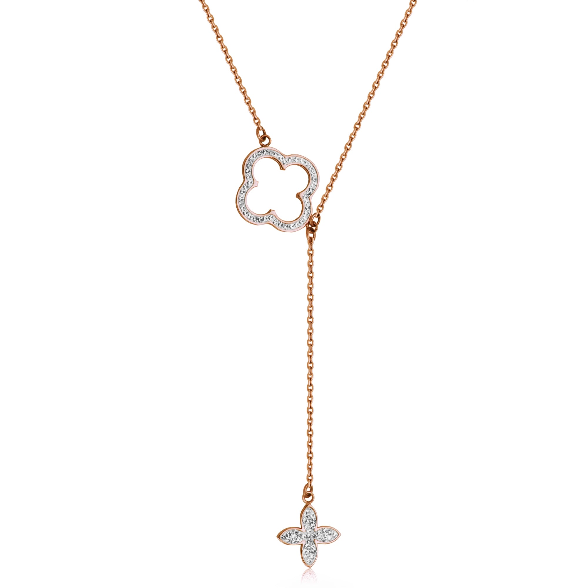 Steelx Stainless Steel Rose Plated Designer Clover Style Lariat Necklace