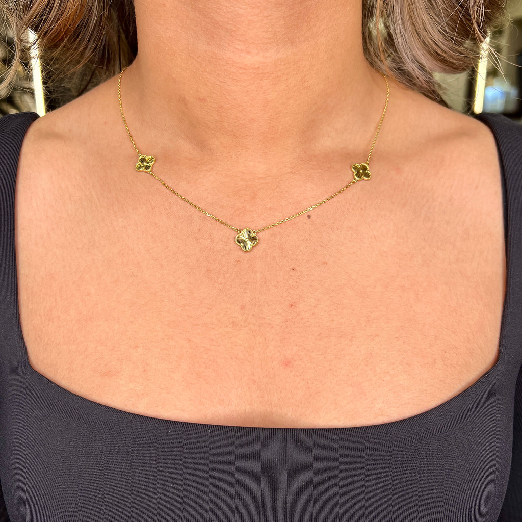 Sterling Silver Designer Style Clover Laser Cut Necklace