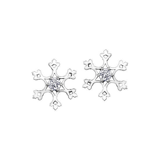 14K White Gold (0.10ct) Canadian Maple Leaf Diamond Snowflake Earrings