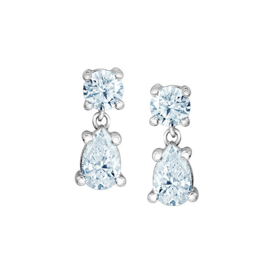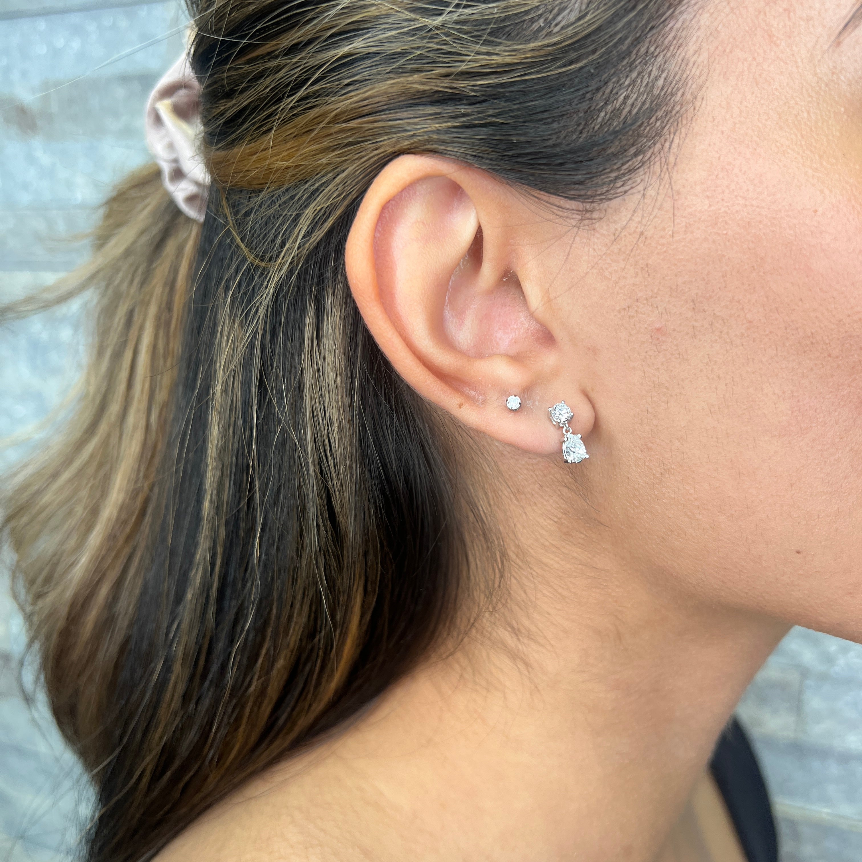 Elegant and radiant, these lab-grown diamond dangle pear-shaped earrings are a captivating display of timeless glamour and modern sophistication. Each earring features a brilliant pear-shaped lab-grown diamond, gracefully suspended from a diamond-accented drop, creating a stunning cascade of sparkle and movement.