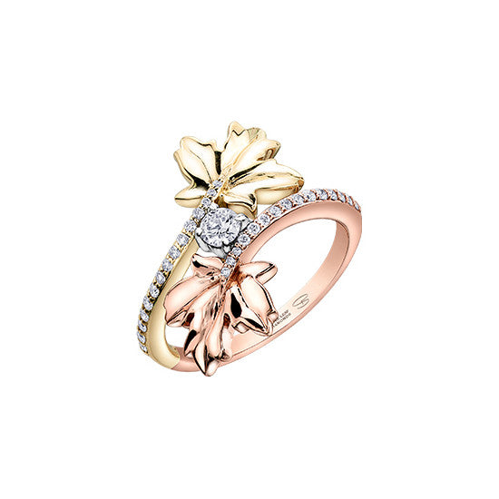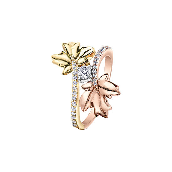 Shelly Purdy 14K Yellow, White and Rose Gold Canadian Diamond Maple Leaf Ring