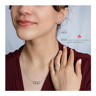 The Canadian landscape is in a state of transformation. Prepare to be awestruck by nature’s abundance of warm and fiery hues. This ring is made with rich and warm coloured rose and yellow gold maple leaves, crafted in 14kt Certified Canadian Gold and set with a round brilliant-cut Canadian diamond, and pave diamonds for a 0.30 TCW total diamond carat weight.