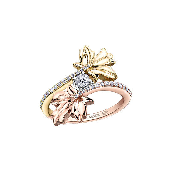 Shelly Purdy 14K Yellow, White and Rose Gold (0.30ct) Canadian Diamond Maple Leaf Ring