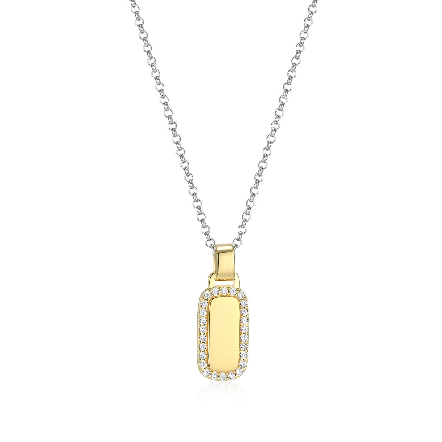Elle Allure Sterling Silver 18K Yellow Gold/Rhodium Plated CZ Halo Dog Tag Necklace