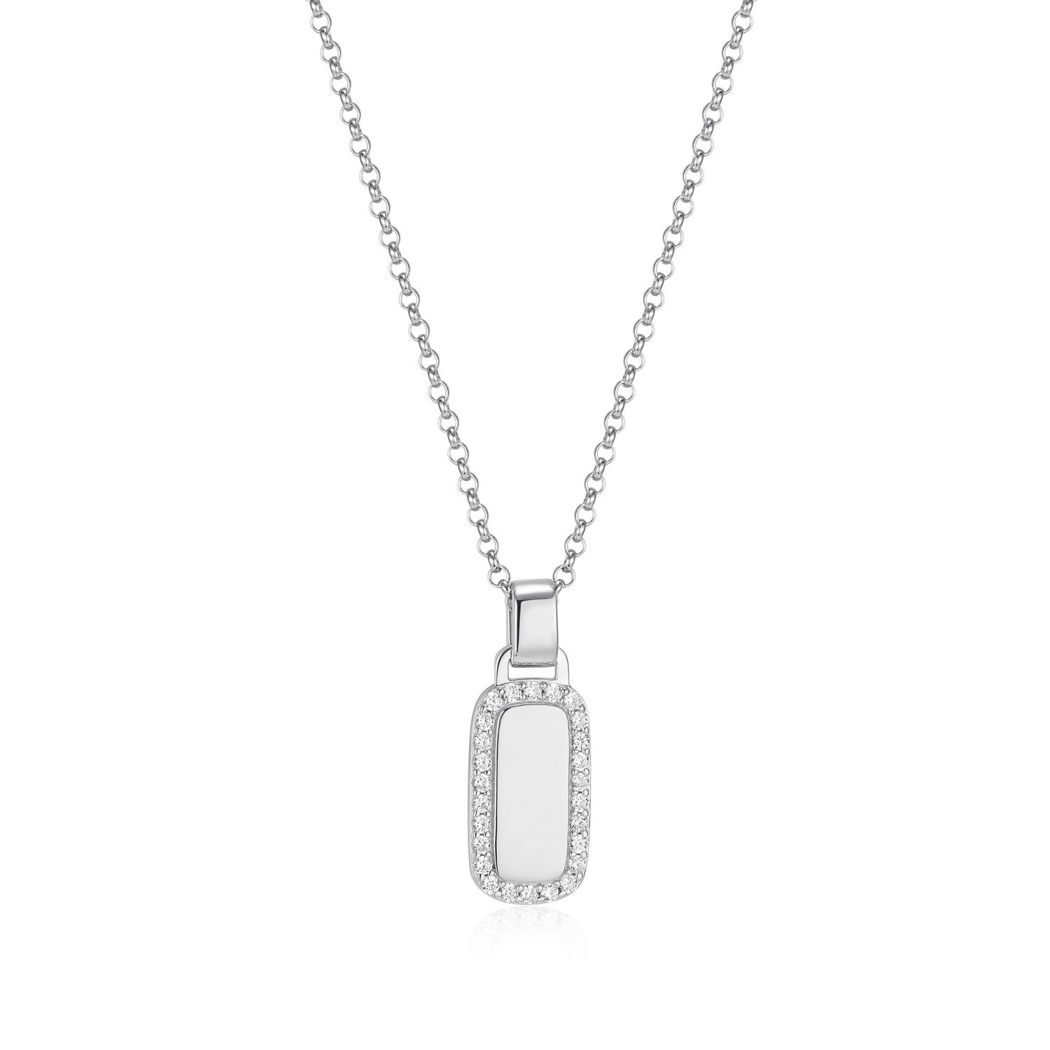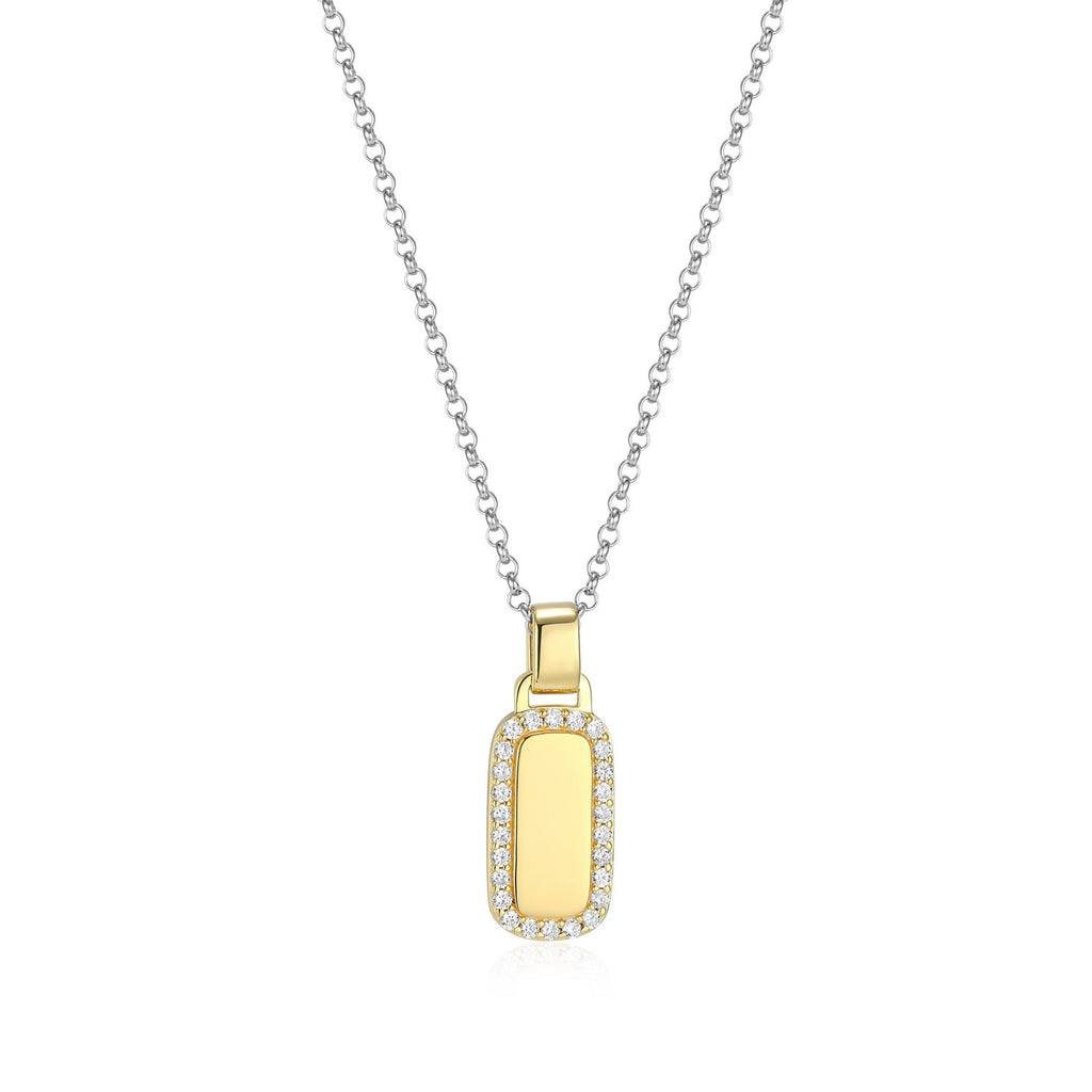 Elle Allure Sterling Silver 18K Yellow Gold/Rhodium Plated Cubic Zirconia Halo Dog Tag Necklace