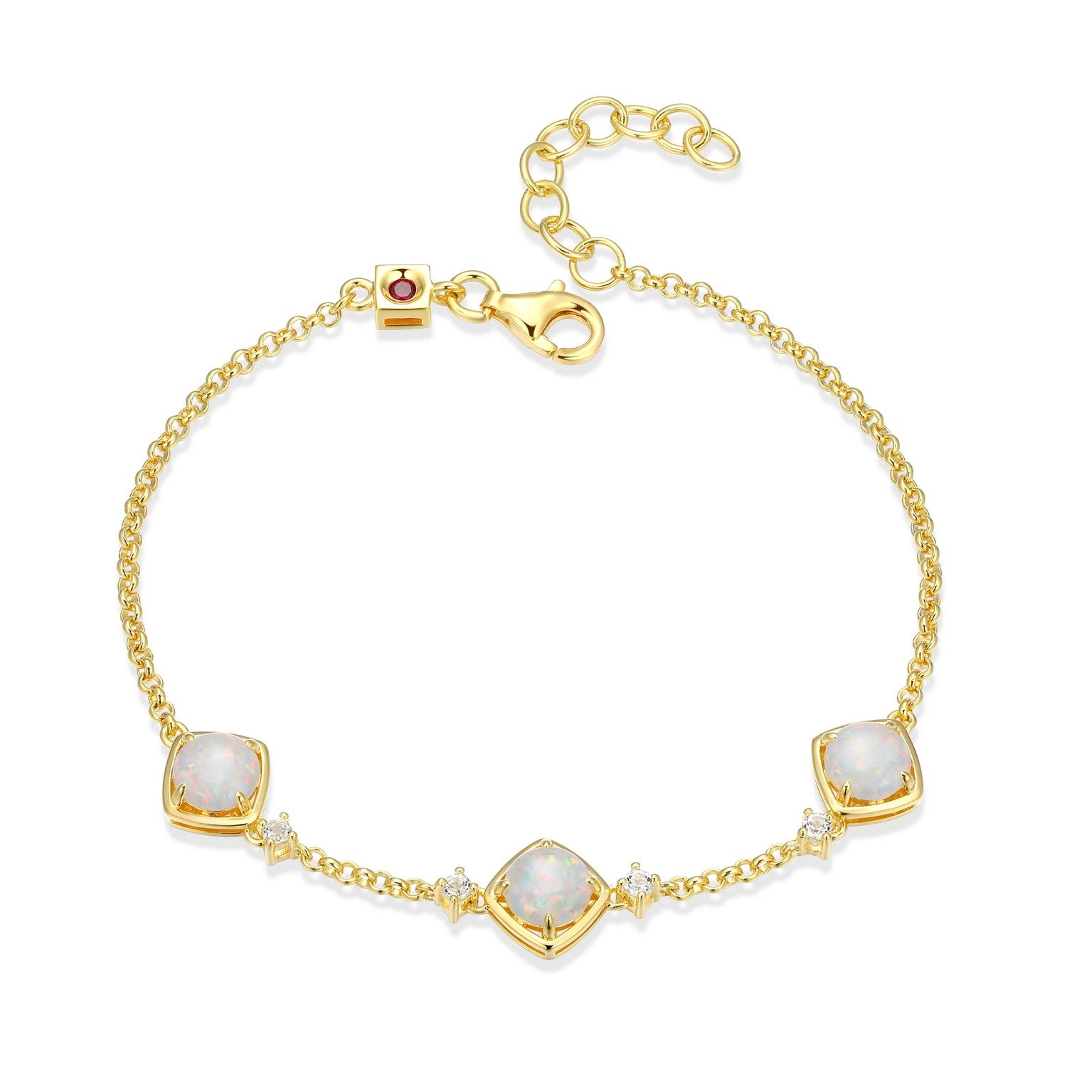 Elle Sway Sterling Silver 18K Gold Plated Created Opal and White Topaz Station Bracelet