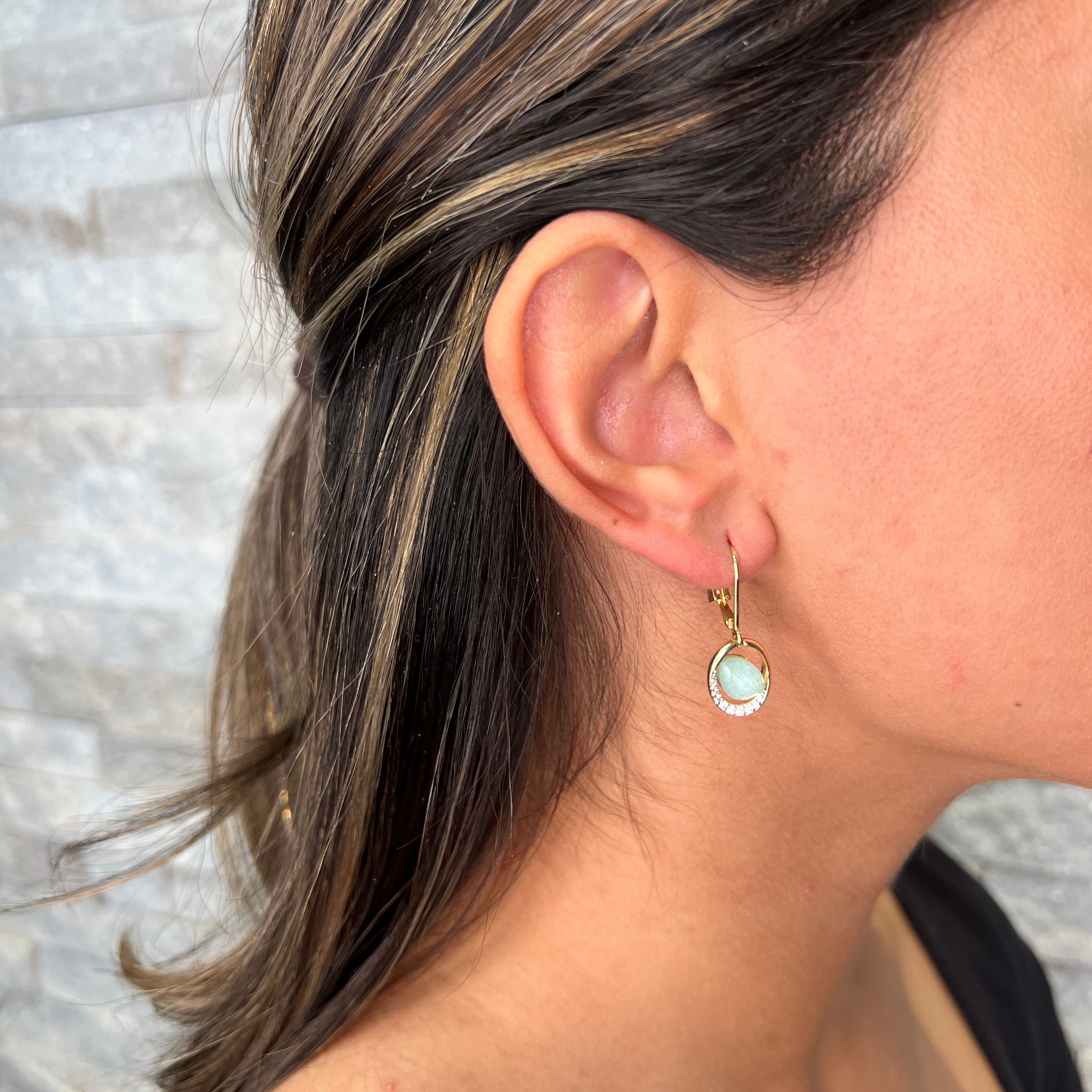 Elle Treasure Sterling Silver Rhodium and Gold Plated White Crystal and Amazonite Drop Earrings