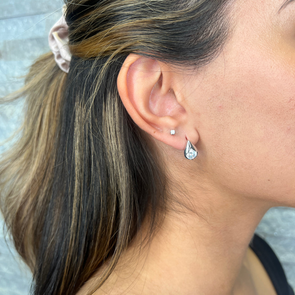 Elle Tulip Sterling Silver Rhodium Plated CZ Pear Shape Stud Earrings