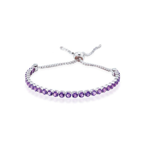 Sterling Silver Rhodium Plated Genuine Amethyst Bolo Bracelet