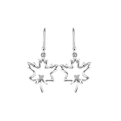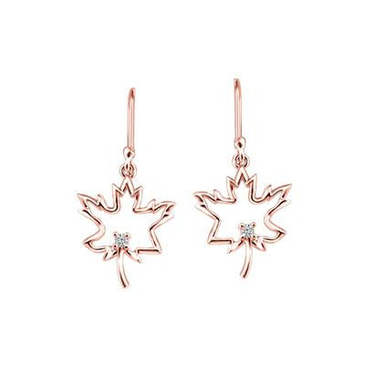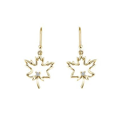 10K Gold (0.05ct -0.10ct) Canadian Diamond Maple Leaf Dangle Earrings