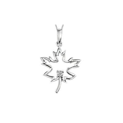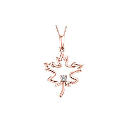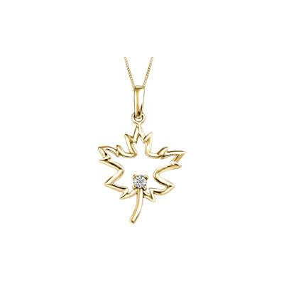 10K Gold (0.05ct -0.10ct) Canadian Diamond Maple Leaf Pendant