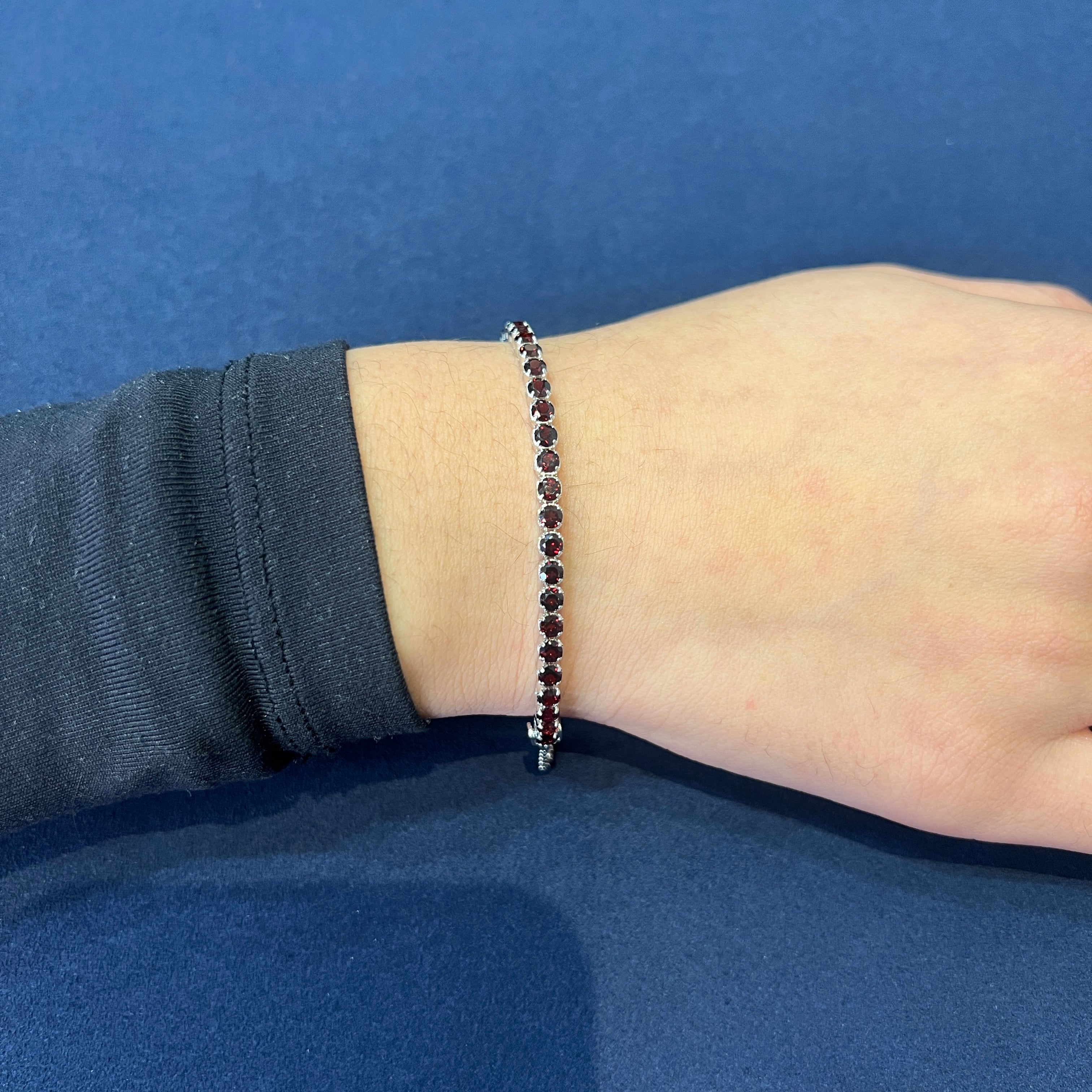 This sterling silver genuine gemstone bolo bracelet features a rich, deep-red garnet centerpiece set in polished silver. The adjustable bolo design ensures a perfect fit, offering both elegance and everyday comfort in a timeless, luxurious style.
