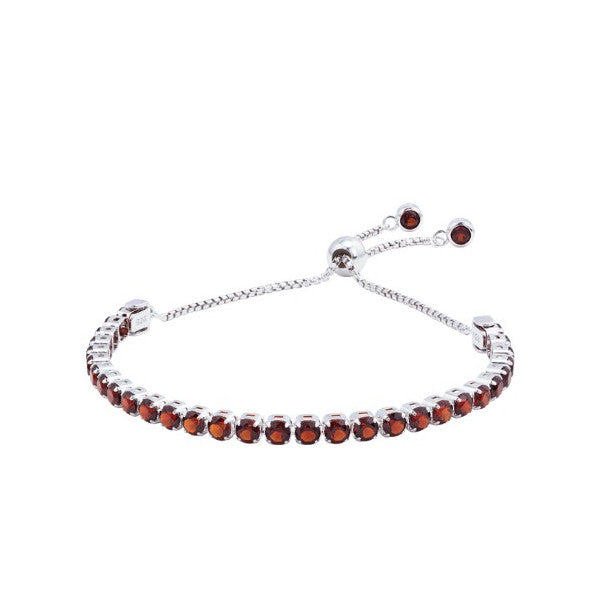 Sterling Silver Rhodium Plated Genuine Garnet Bolo Bracelet