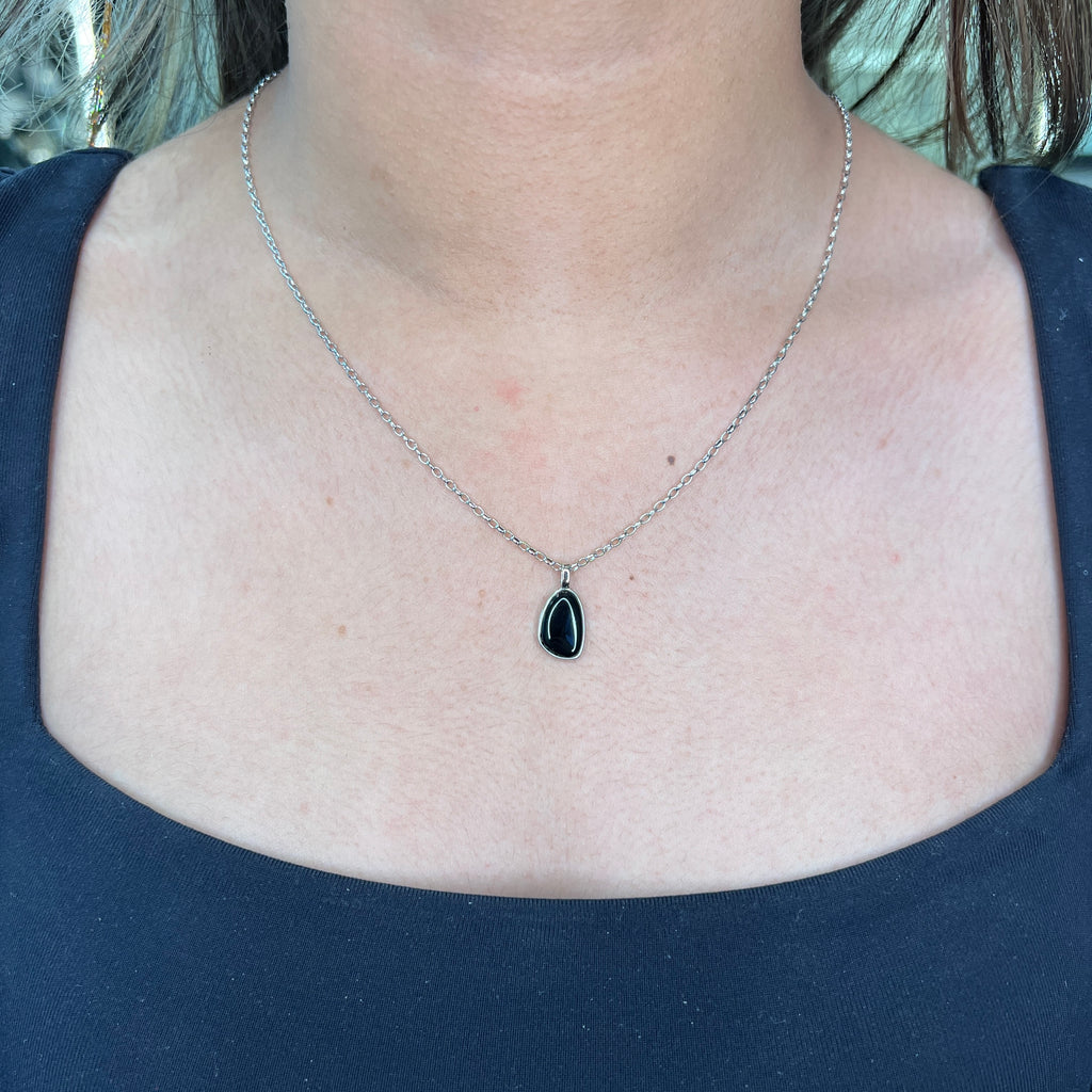 Elle Pebble Sterling Silver Rhodium Plated Black Agate Necklace