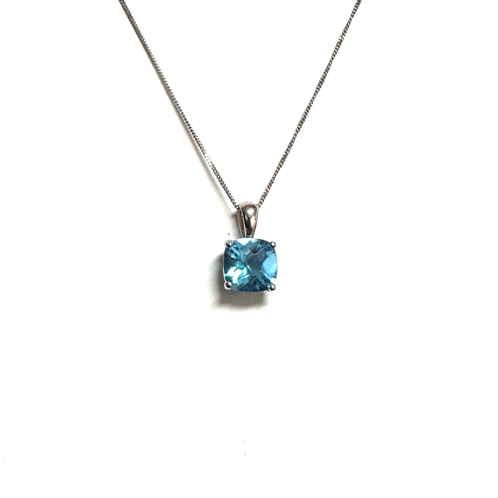 10K White Gold (8mm) Checkered Cut Blue Topaz Pendant