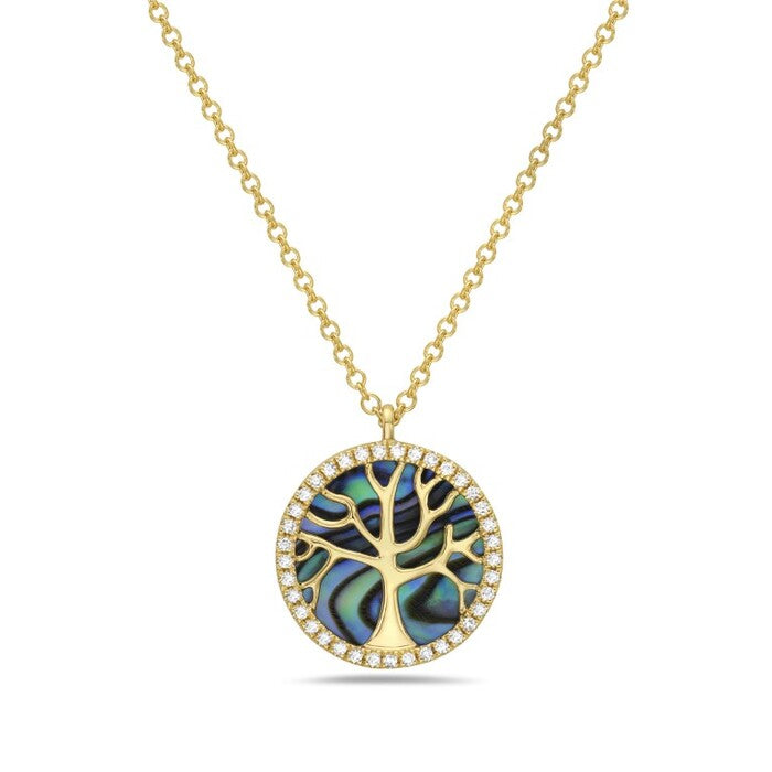 Bassali 14K Yellow Gold Mother of Pearl and Diamond Tree of Life Necklace
