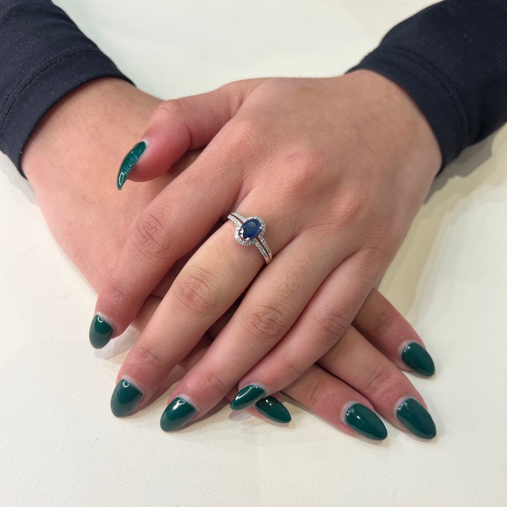 14K White Gold Sapphire and Diamond Halo Ring