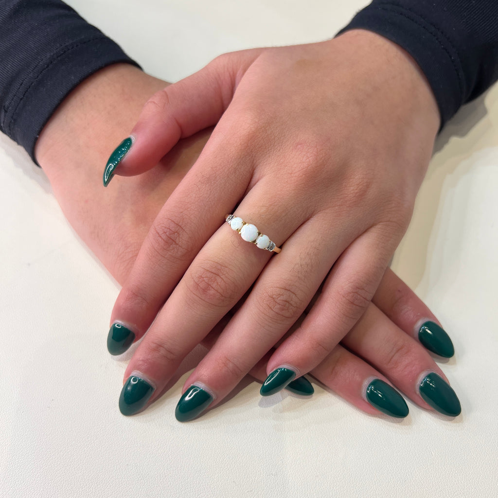 14K Yellow Gold Three Stone Opal and Diamond Ring