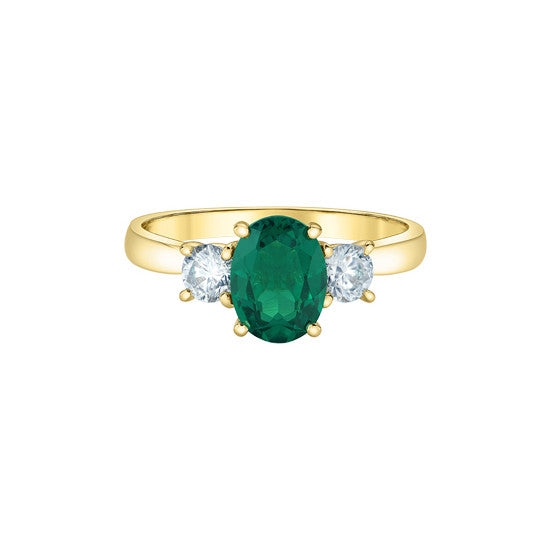 10K White Gold (May) Birthstone Emerald and Diamond Halo Ring