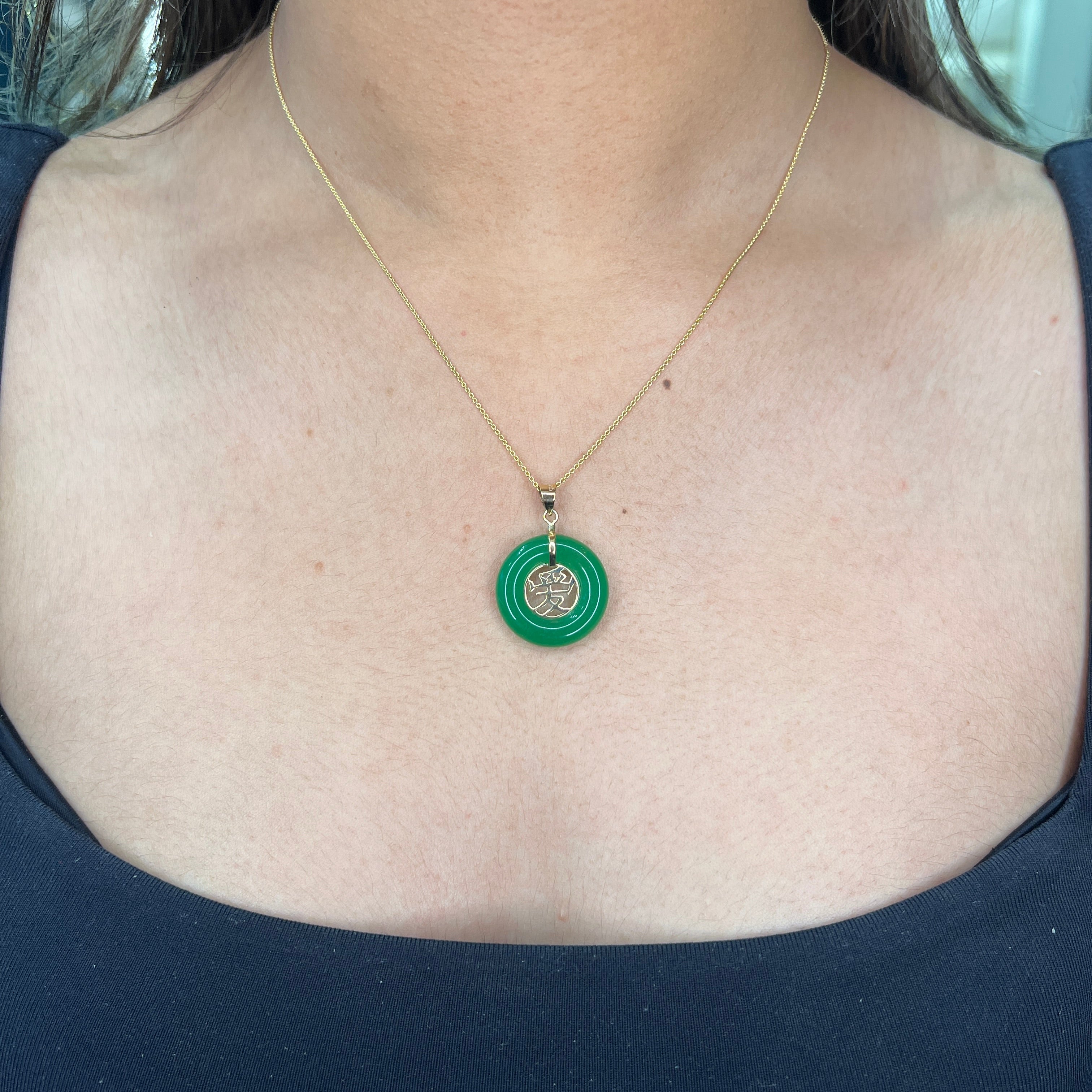 14K Yellow Gold Jade "Love" Donut Pendant
