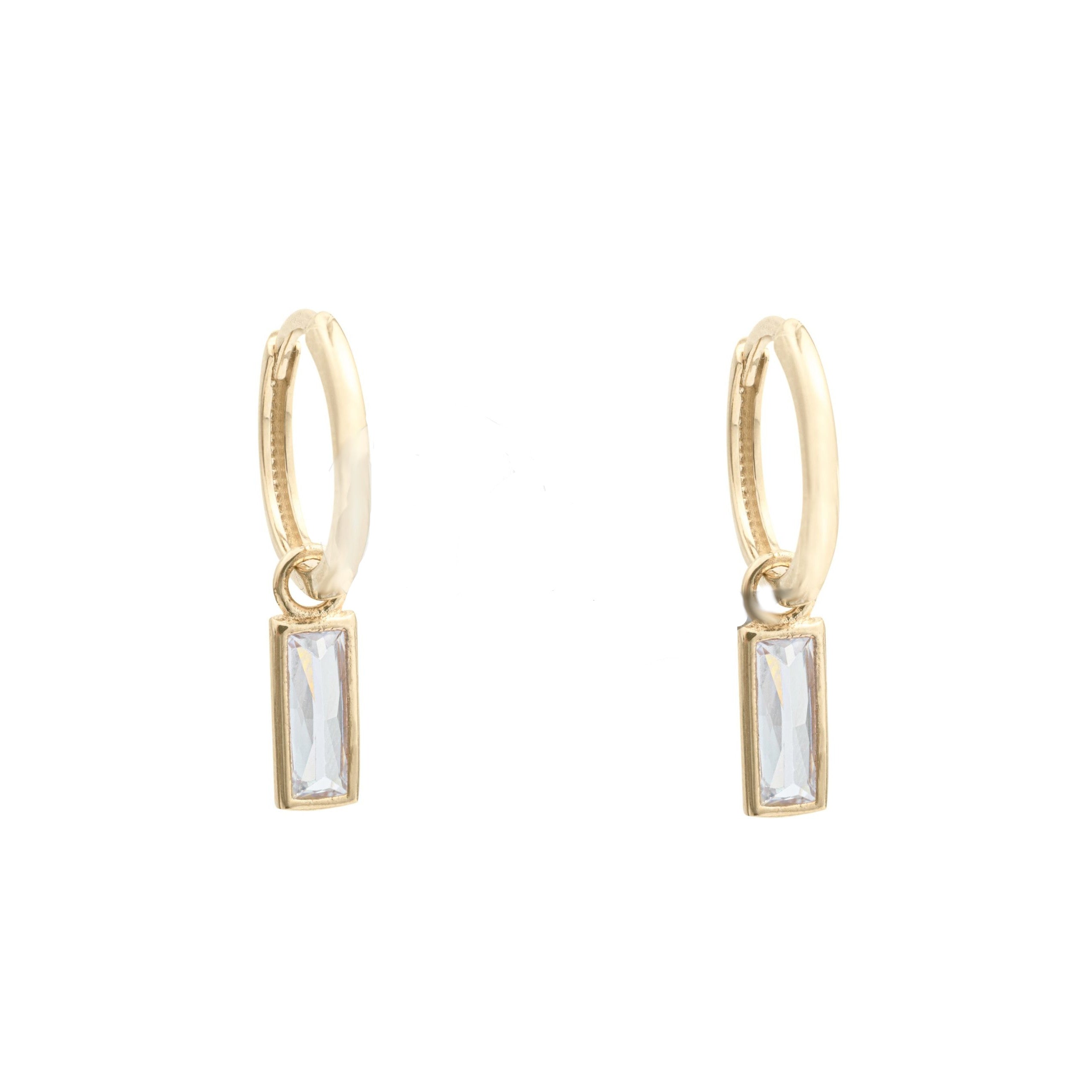 10K Yellow Gold Dangle Cubic Zirconia Huggie Earrings