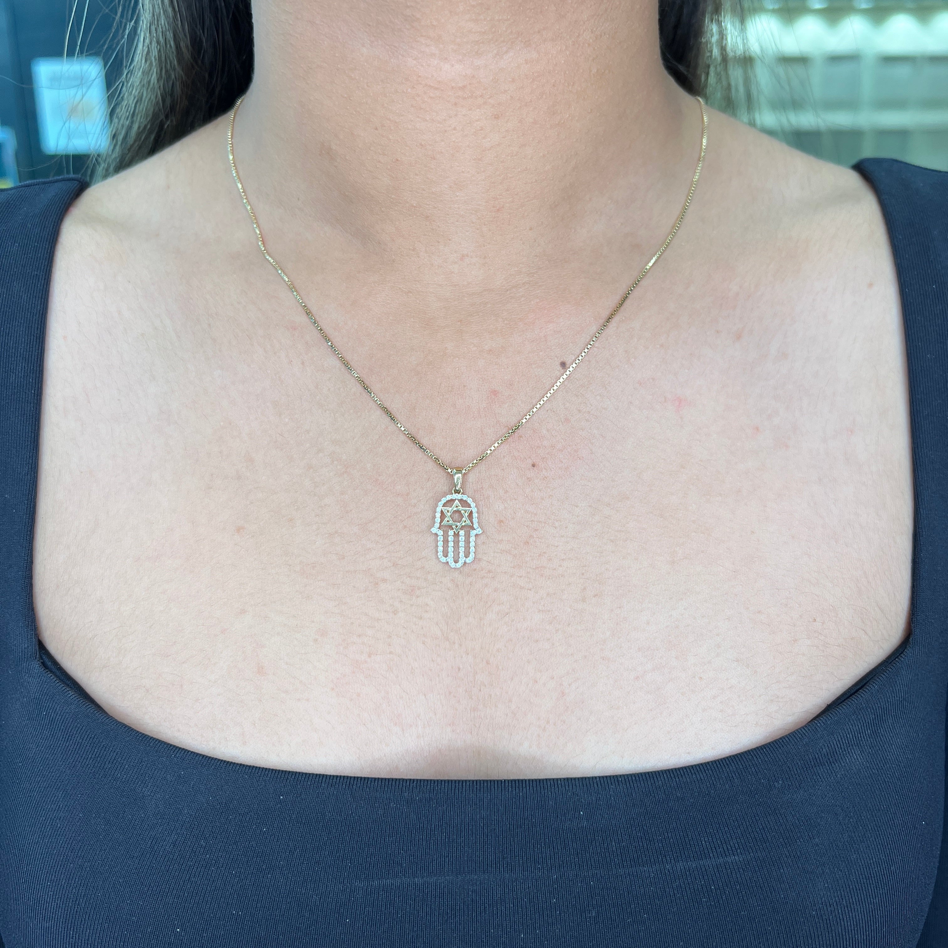 10K Yellow Gold Cubic Zirconia Hamsa and Star of David Pendant