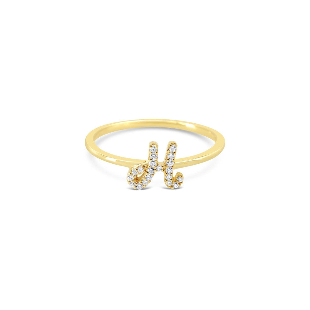 10K Yellow Gold Script Lab Grown Diamond Initial "H" Ring