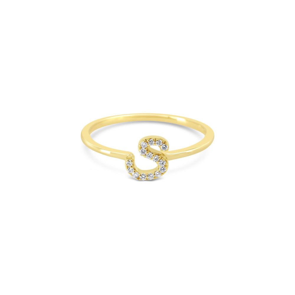 10K Yellow Gold Script Lab Grown Diamond Initial "S" Ring