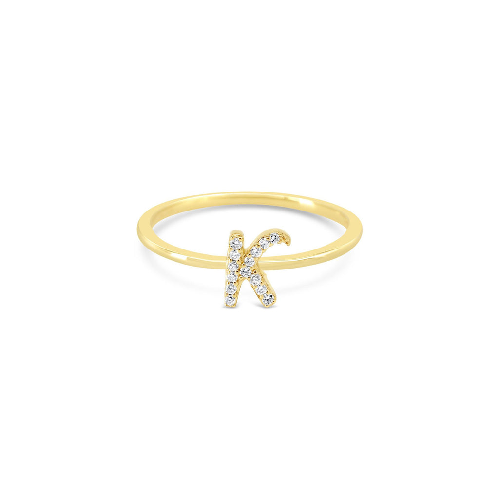 10K Yellow Gold Script Lab Grown Diamond Initial "K" Ring
