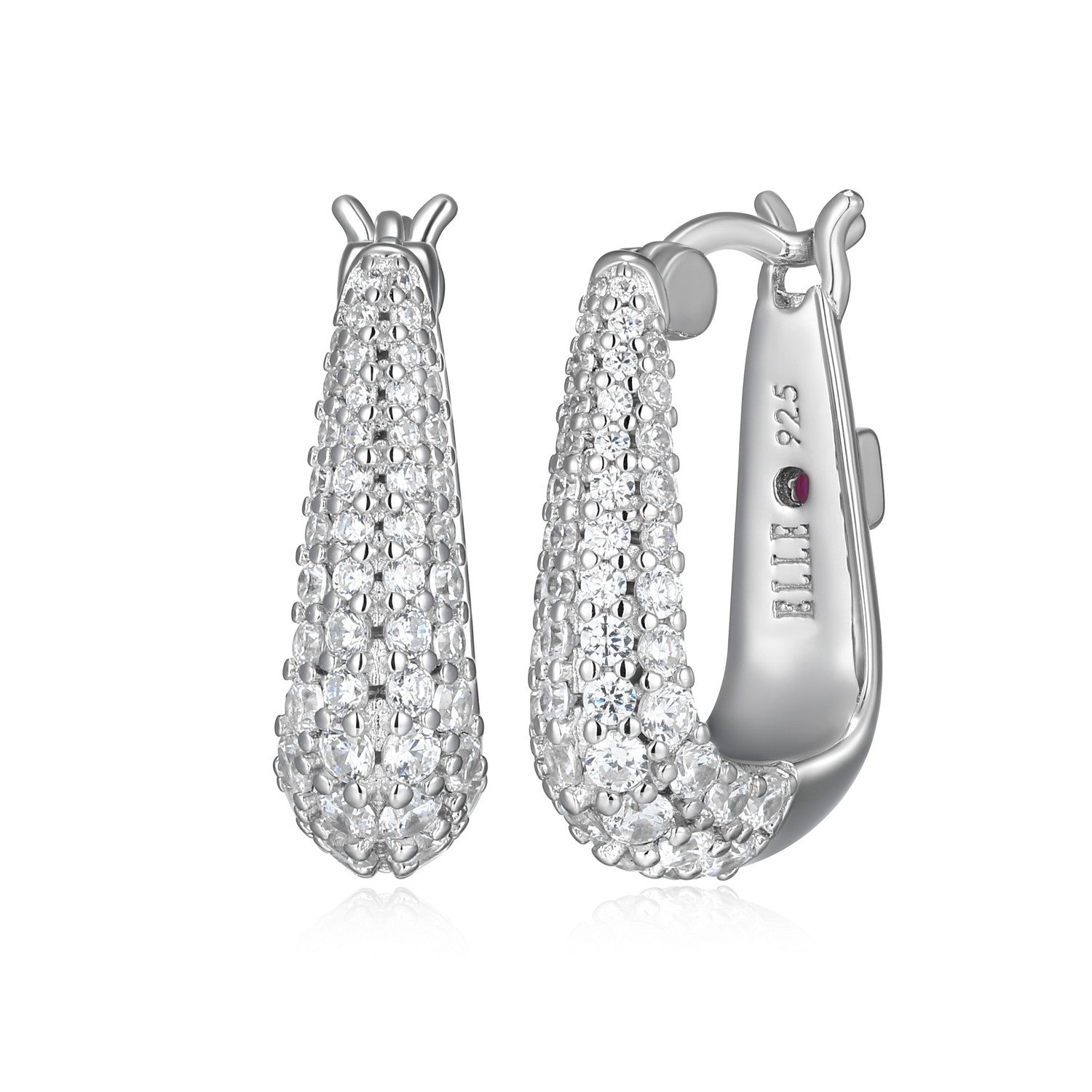 Elle Citadel Sterling Silver Rhodium Plated Pave Cubic Zirconia Oblong Shape Hoop Earrings