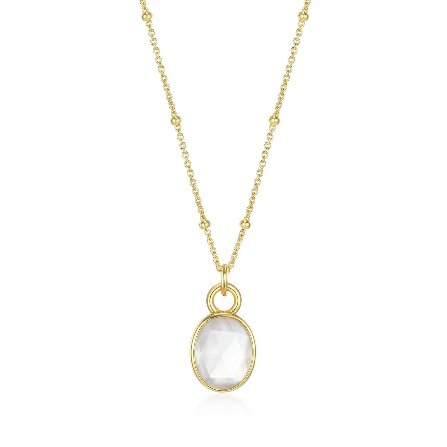 Reign Sterling Silver 18K Gold Plated Oval Mother of Pearl Crystal Necklace