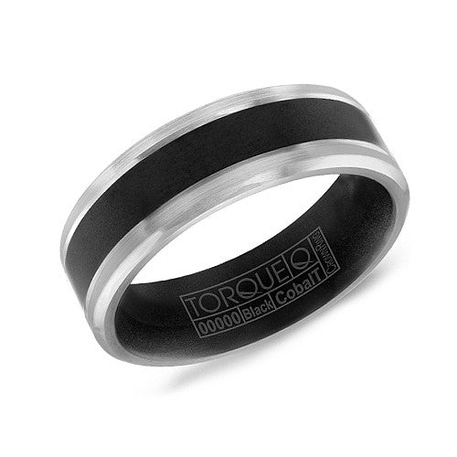 Torque (7mm) Black and White Cobalt Brushed Finish Mens Band