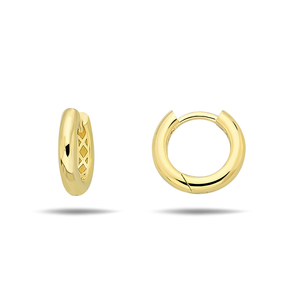 Sleek and stylish, these 10K yellow gold huggie earrings feature a slim 2 mm profile and a comfortable 12 mm diameter that hugs the earlobe with understated elegance. Their polished finish adds a subtle shine, making them perfect for daily wear or stacking with other earrings for a trendy look.