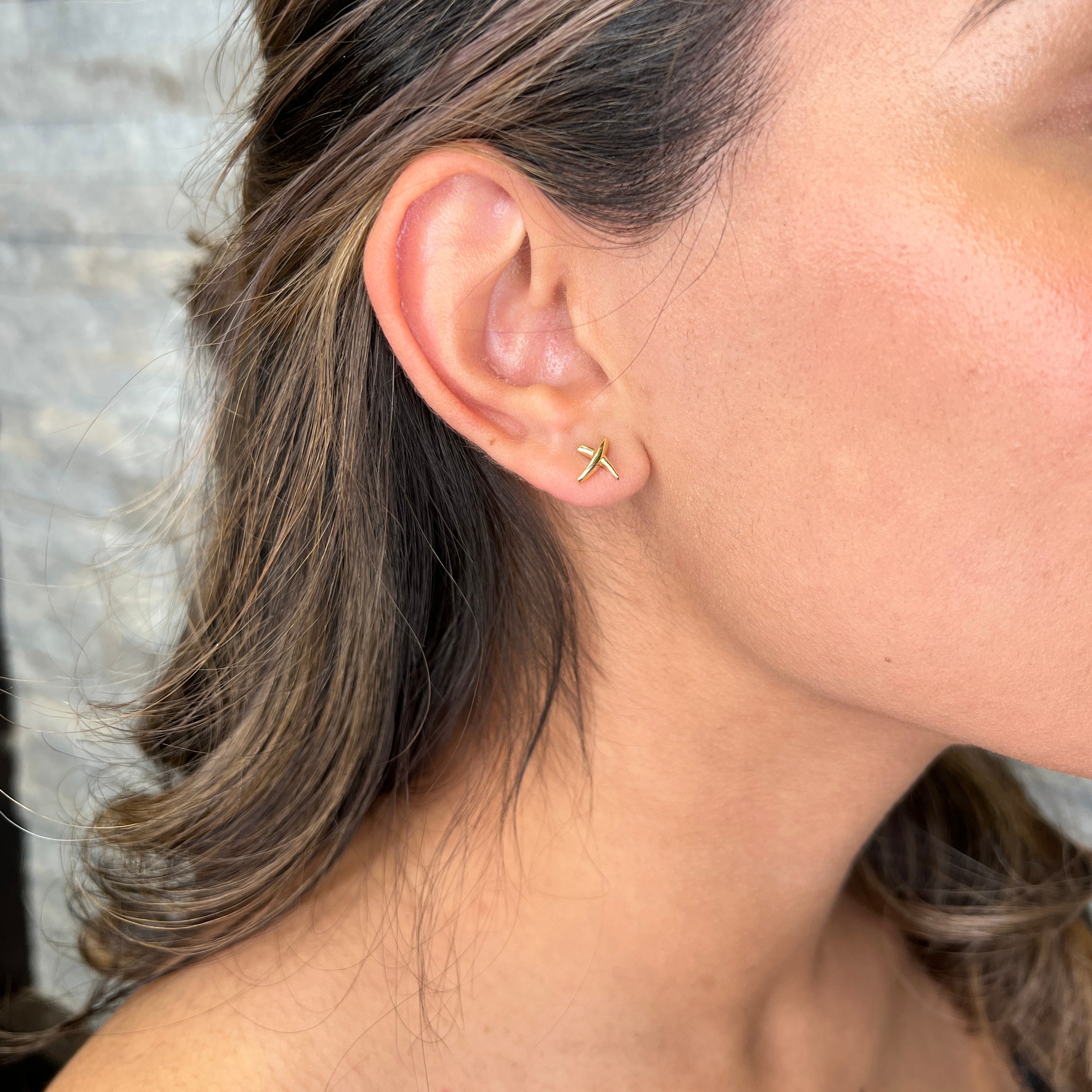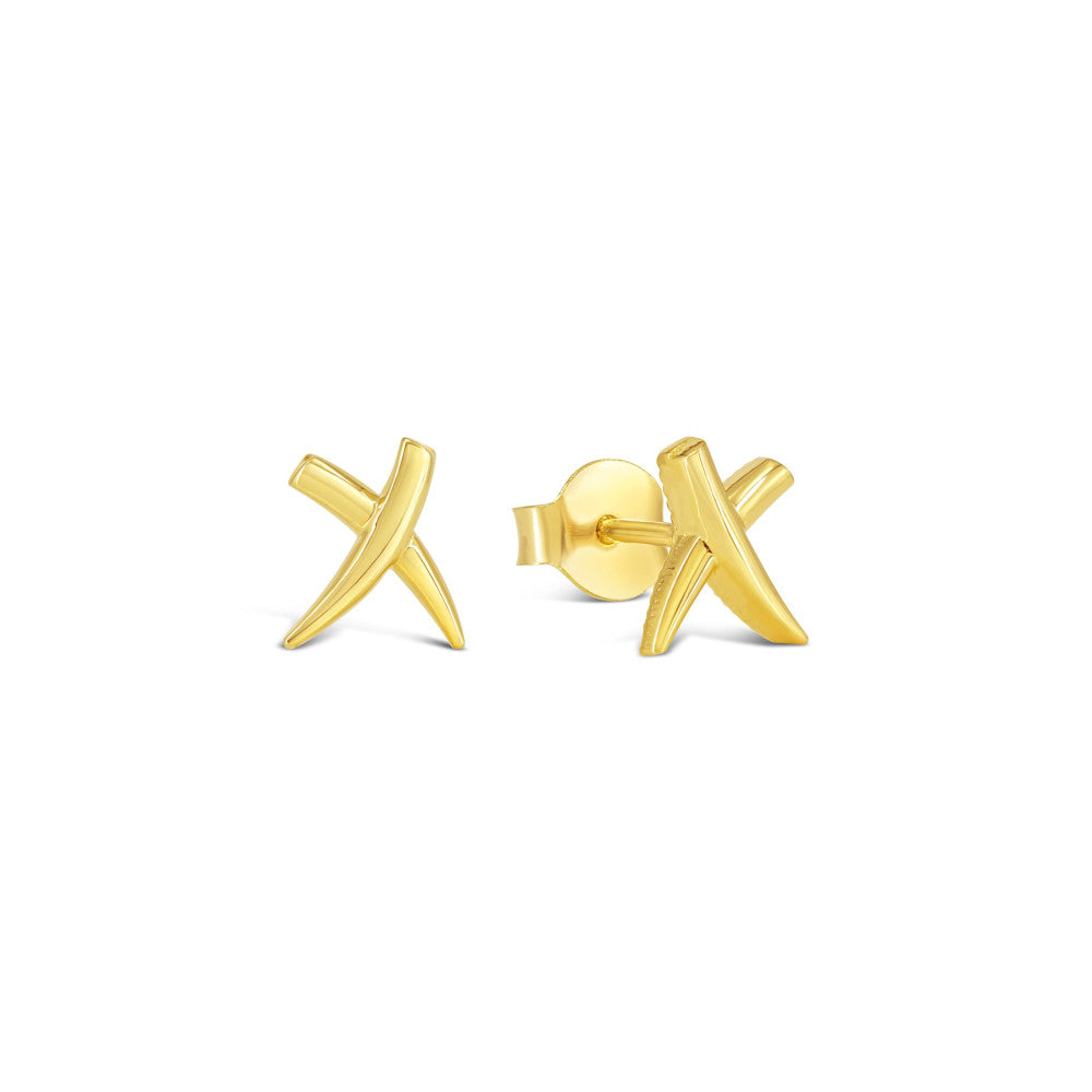 10K Yellow Gold Criss Cross Stud Earrings