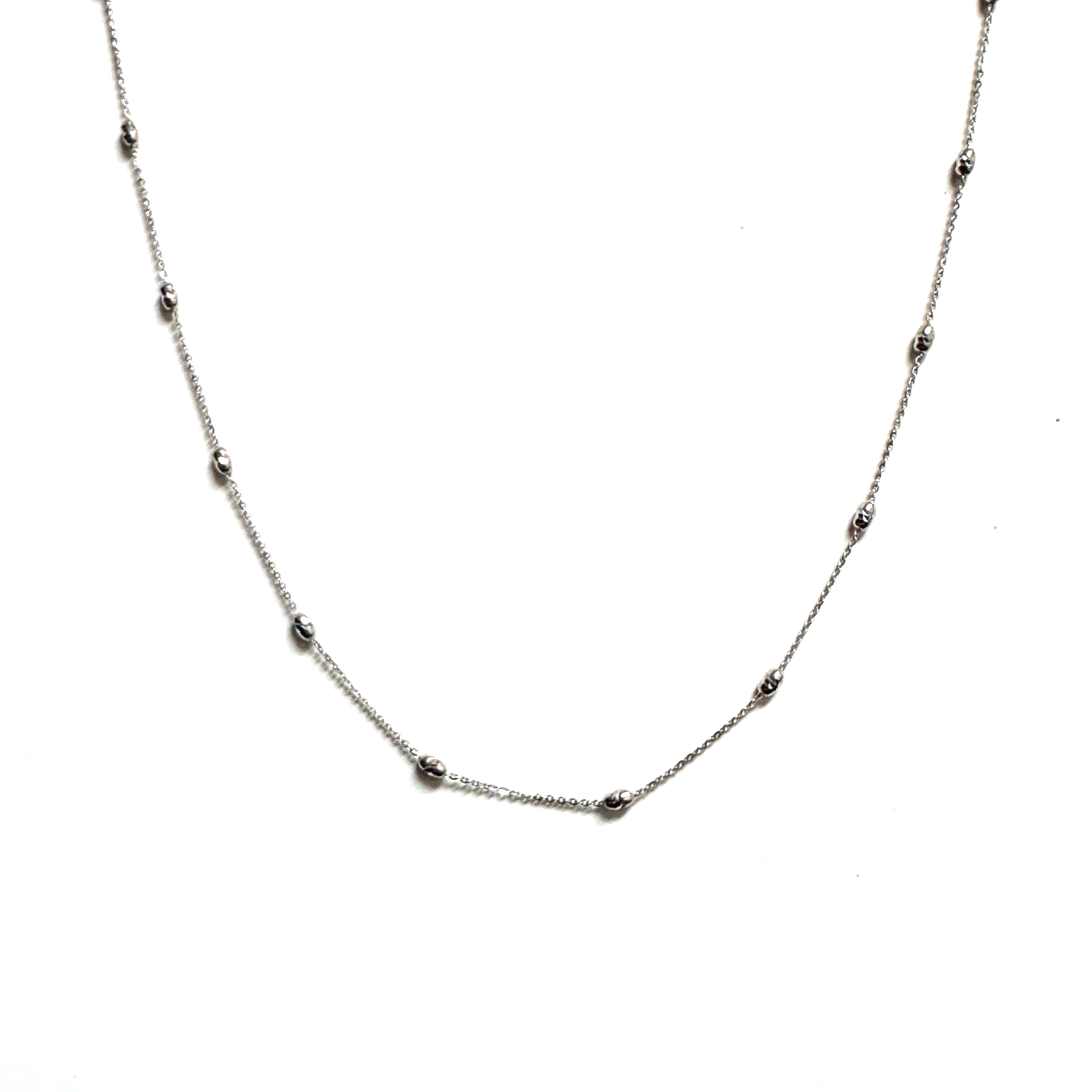 14K White Gold Diamond Cut Beaded Necklace
