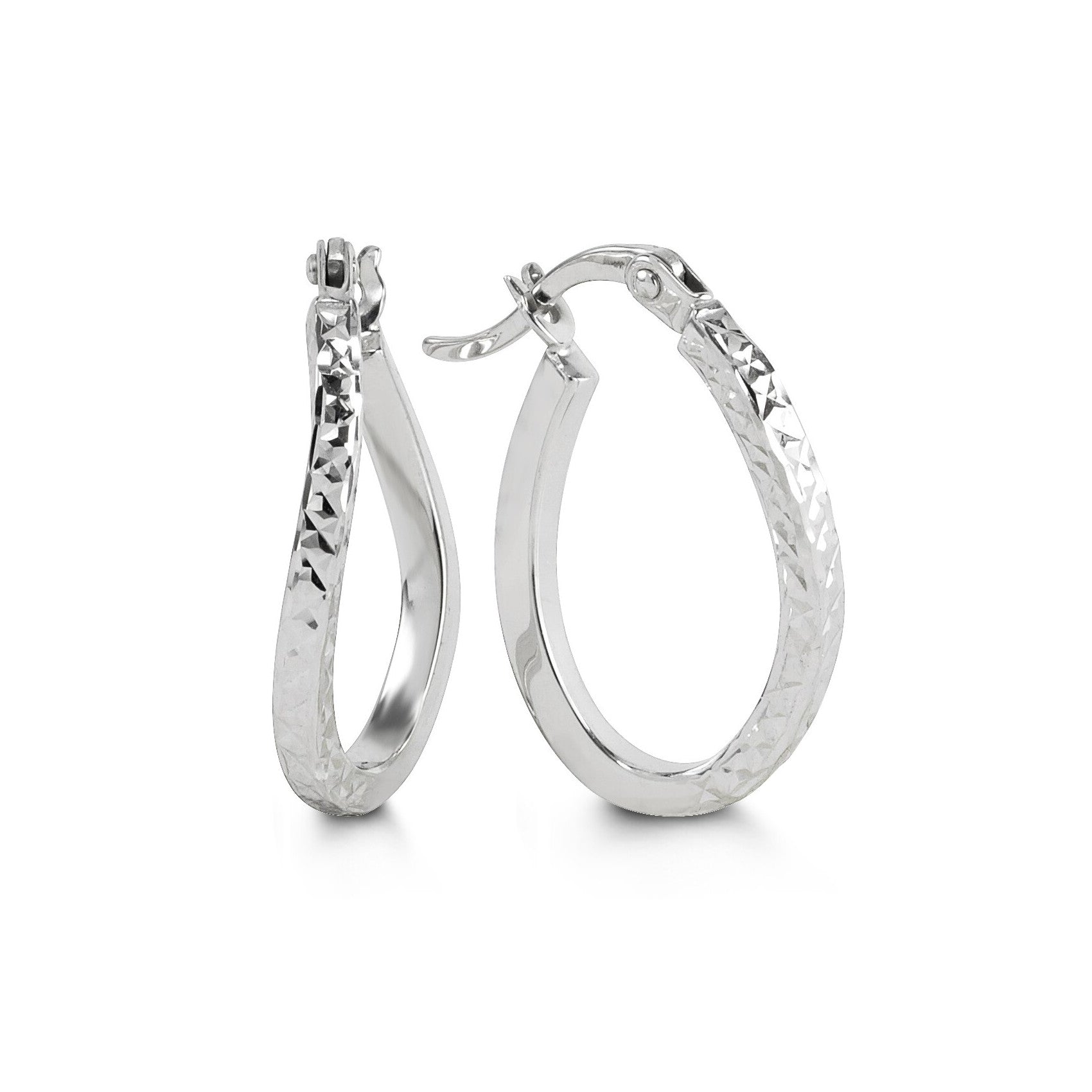 10K White Gold Diamond Cut Fancy Hoop Earrings