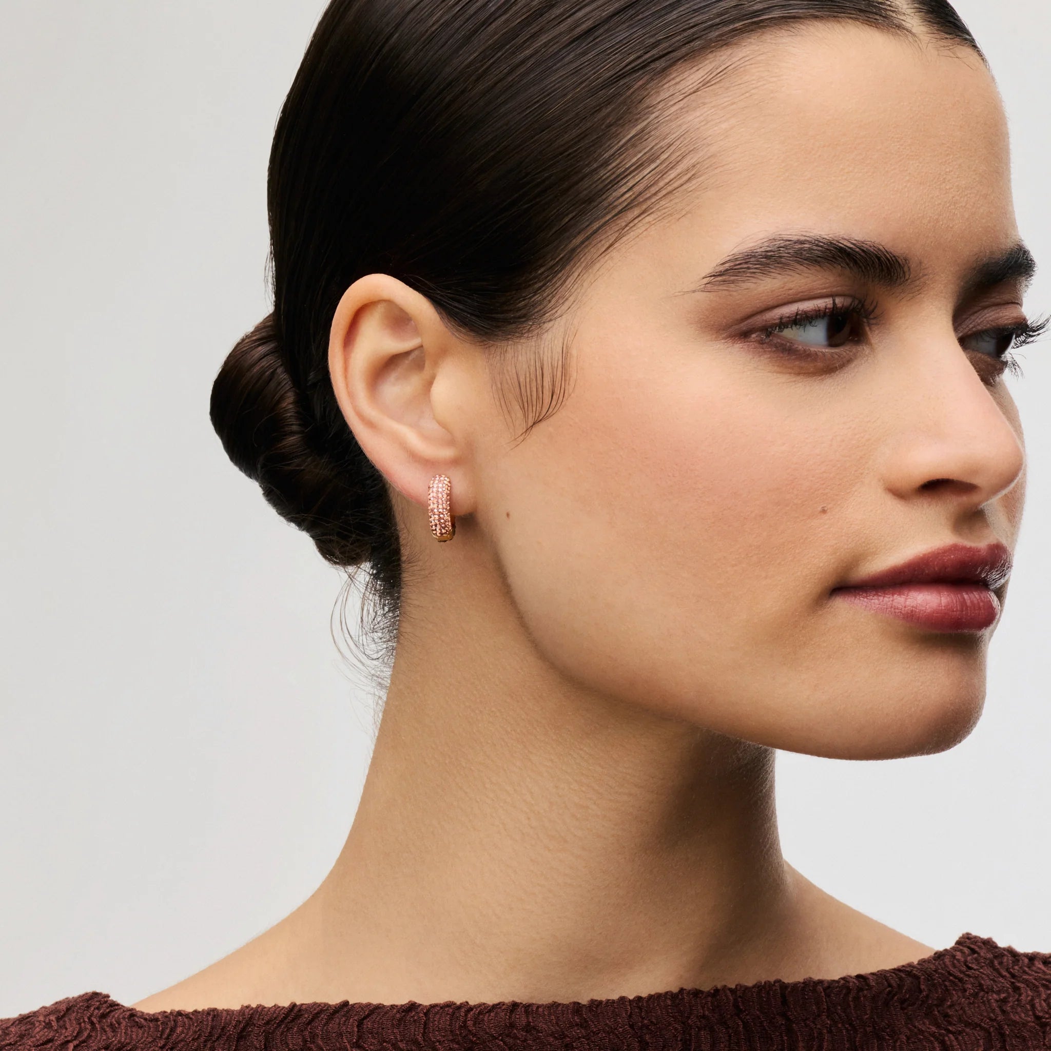 A subtle statement with a story on both sides. These reversible 16mm hoops feature two proprietary Hillberg & Berk crystal finishes: warm Desert Rose on one side and soft Sand Dunes on the other. Made to reflect the shifting hues of desert light, this sculptural style adds versatility and polish to any look. Whether you want a hint of blush or a grounded neutral tone, these hoops let you switch your Sparkle with a simple flip.